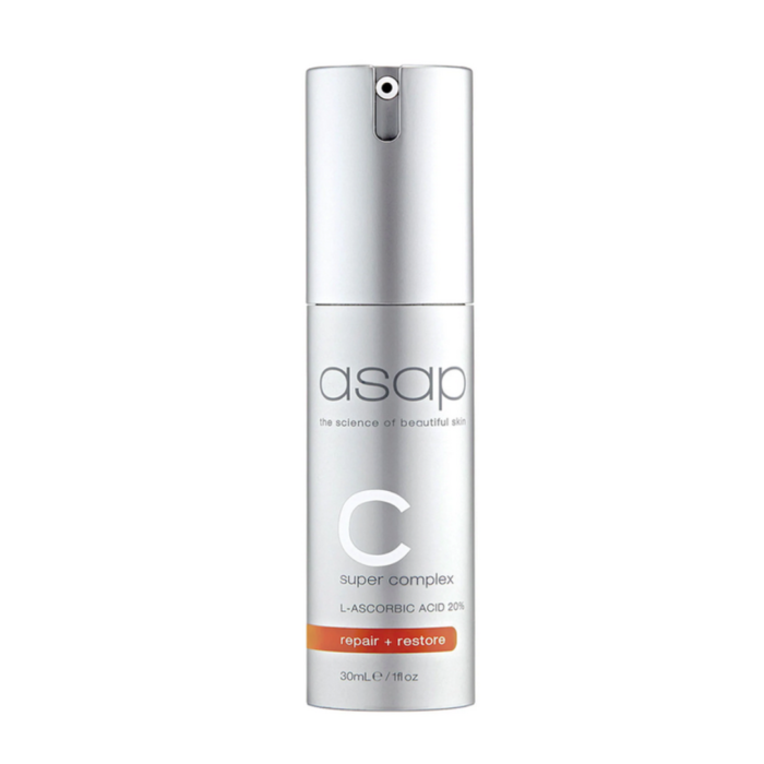 Het ASAP Super C Complex bevat een hoge concentratie vitamine C (L-ascorbinezuur) en krachtige antioxidanten zoals Pycnogenol, Co-enzym Q10 en Olijfextract. Samen beschermen deze ingrediënten je huid tegen pigmentatie, schadelijke invloeden van buitenaf en tekenen van huidveroudering. Het resultaat? Een heldere, egale en stralende huid.